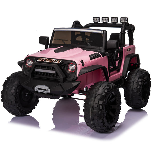 24 Volt Ride on Toys with 2 Seater Remote Control, 4WD Ride on Truck w/ 4*200W Motors 9AH Battery Powered Electric Car, 3 Speeds, Spring Suspension, LED Lights, Bluetooth Music, Pink